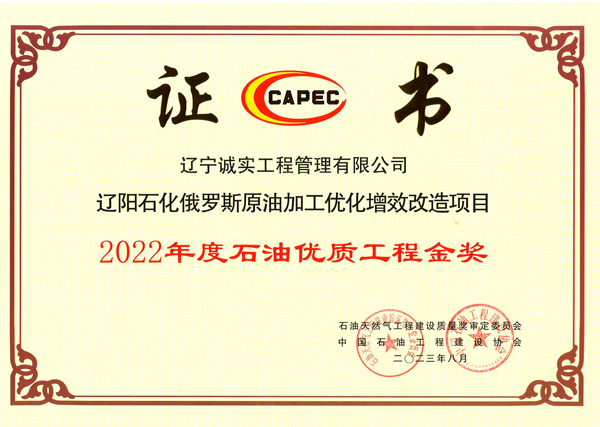 2016年石油優(yōu)質(zhì)工程金獎(撫順石化...