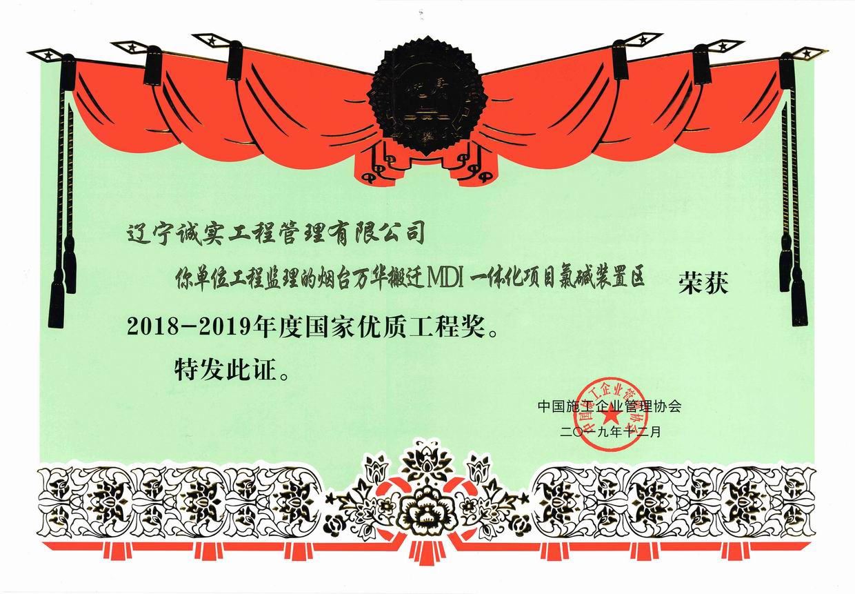 2018-2019年度國(guó)家優(yōu)質(zhì)工程獎(jiǎng)(煙臺(tái)萬(wàn)華搬遷MDI一體化項(xiàng)目氯堿裝置區(qū))