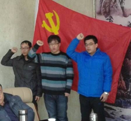 陳雷、鄧戎龍、王振三名同志在黨旗下莊嚴(yán)宣誓