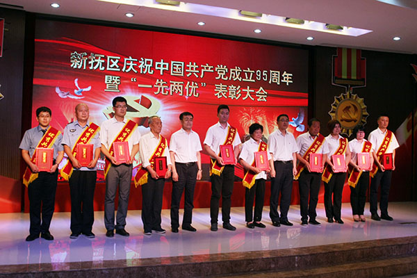 630下午,新?lián)釁^(qū)召開慶祝中國共產(chǎn)黨成立95周年表彰大會,對做出突出貢獻(xiàn)的先進(jìn)黨組織,優(yōu)秀共產(chǎn)黨員和優(yōu)秀黨務(wù)工作者進(jìn)行表彰。我公司被授予“先進(jìn)黨組織”榮譽稱號,任潤東被授予“先進(jìn)黨務(wù)工作者”榮譽稱號,尋藍(lán)春、謝淑蘭被授予“優(yōu)秀共產(chǎn)黨員”榮譽稱號。