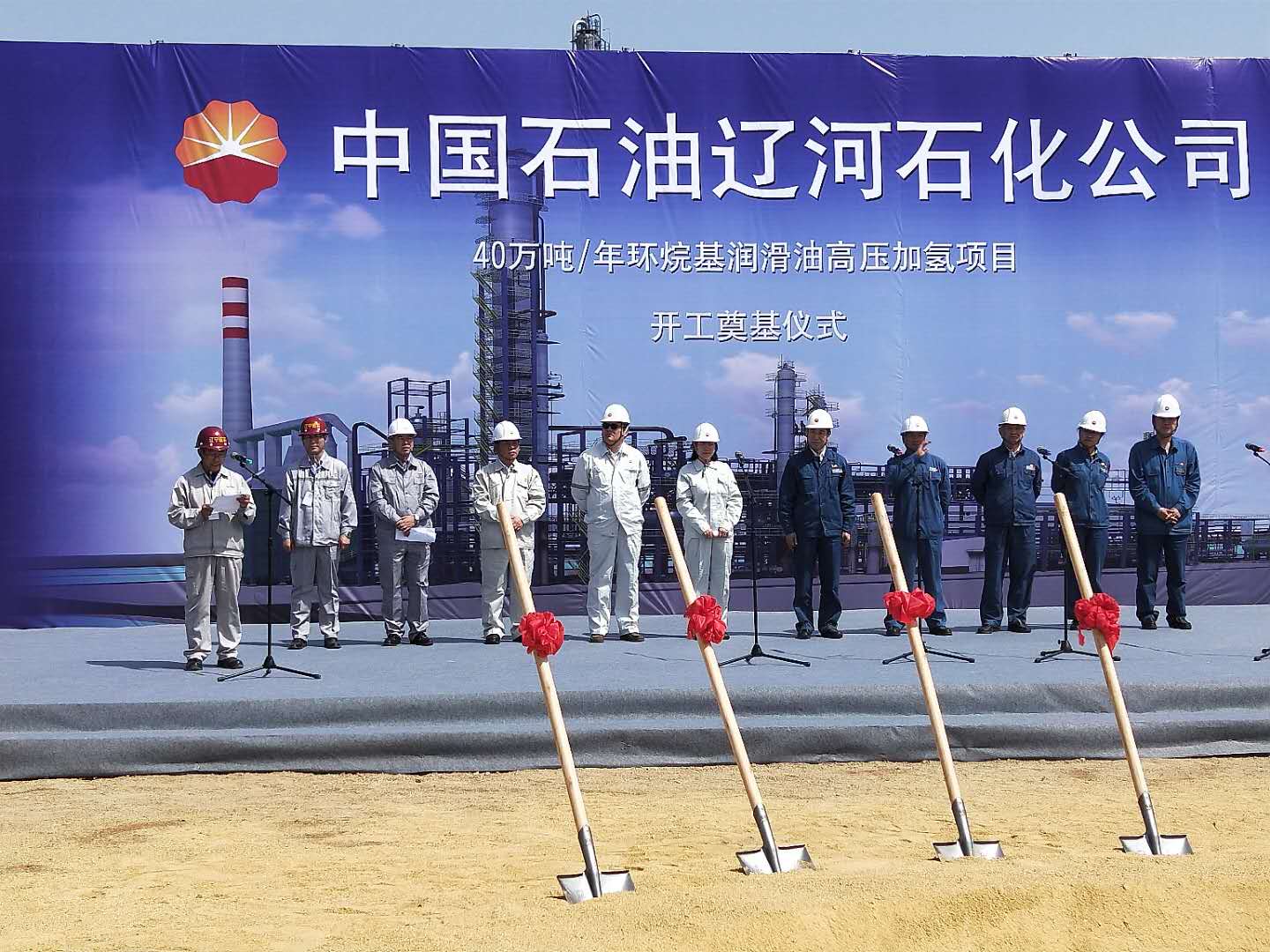 2018年5月8日上午9時58分,風(fēng)和日麗,晴空萬里。中國石油遼河石化公司40萬噸/年環(huán)烷基潤滑油高壓加氫項目開工奠基儀式在遼河石化廠區(qū)項目現(xiàn)場隆重舉行。我公司總經(jīng)理田立奎、項目總監(jiān)理工程師黃思敏以及項目監(jiān)理部全體監(jiān)理人員參加了會議。