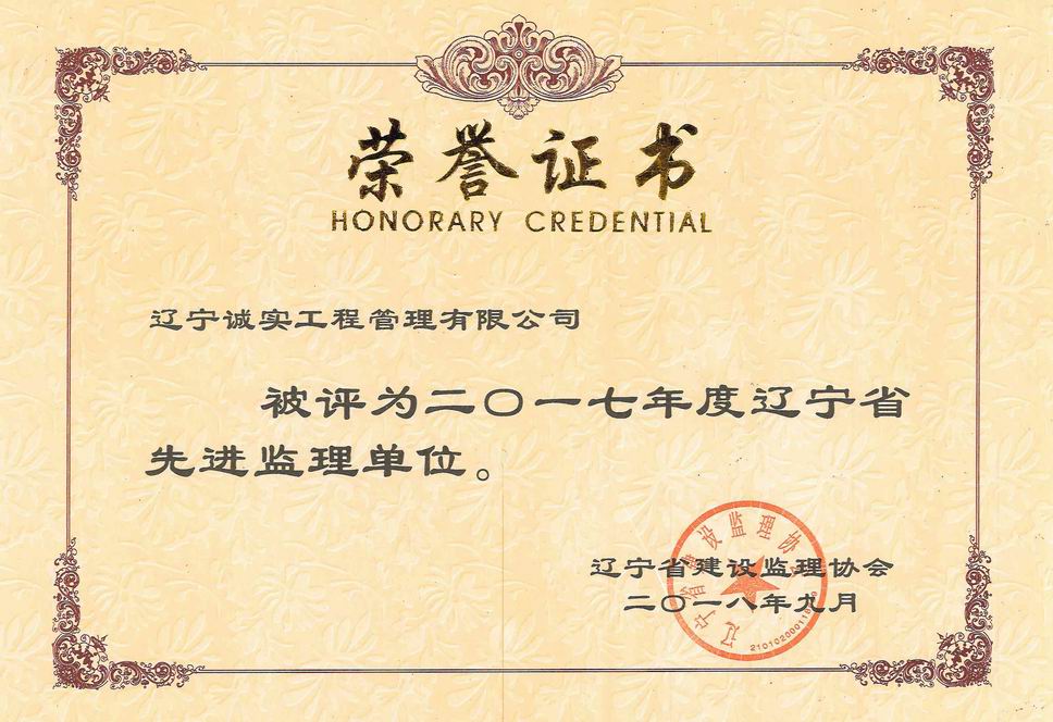我公司被遼寧省建設監(jiān)理協(xié)會評為2017年度遼寧省先進監(jiān)理單位、任潤東和馬駿被評為優(yōu)秀總監(jiān)理工程師