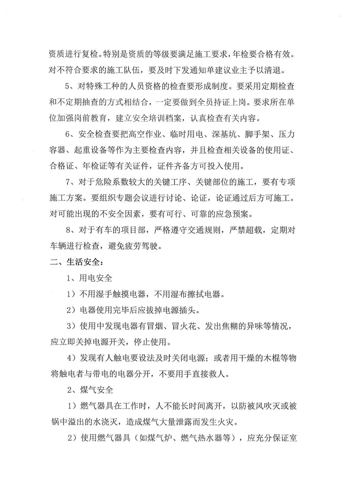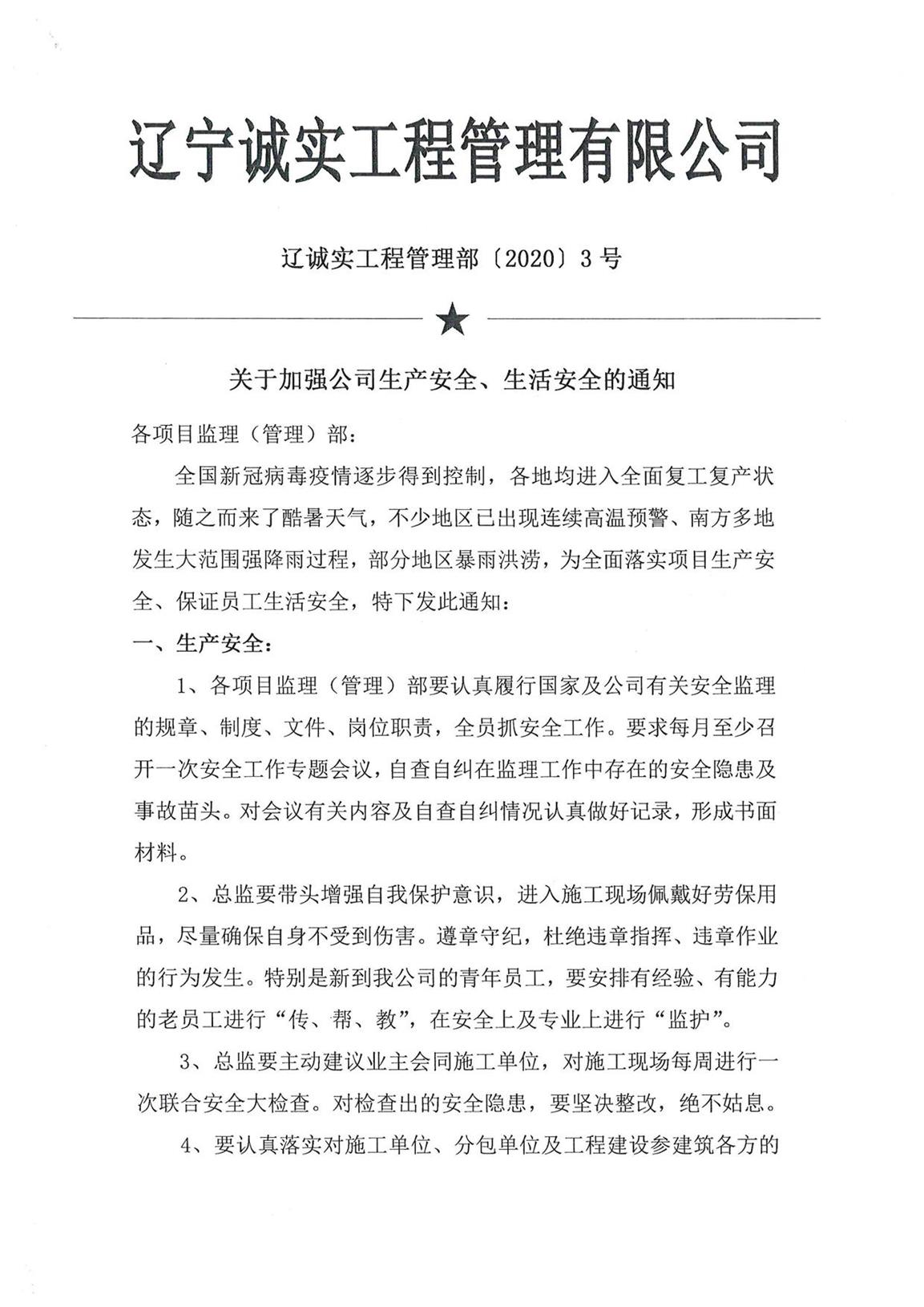 關(guān)于加強(qiáng)公司生產(chǎn)安全、生活安全的通知--工程管理部3號文件