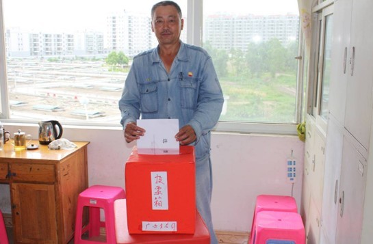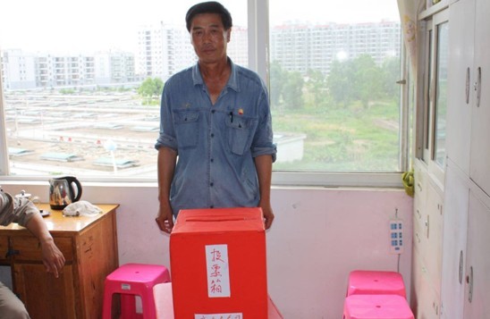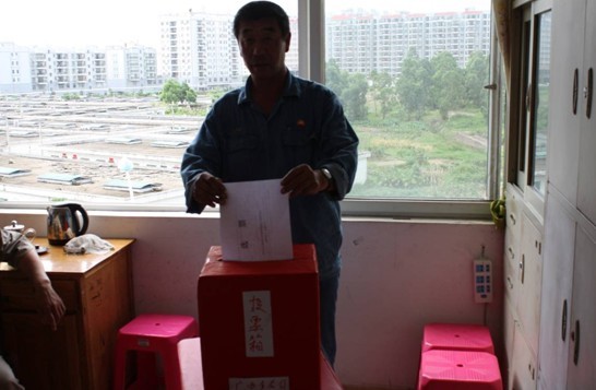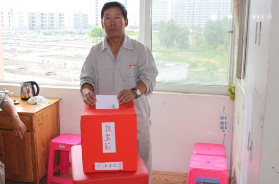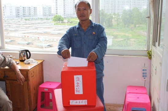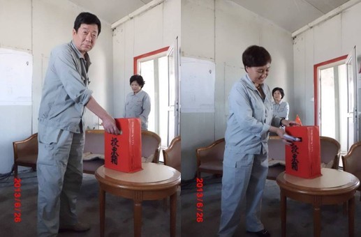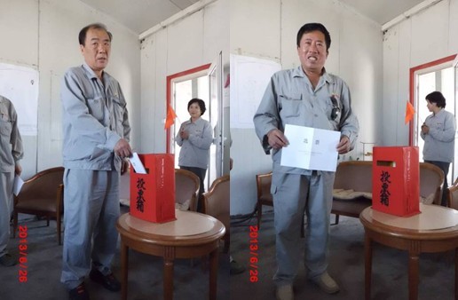監(jiān)票人程貴昌、王金明同志在統(tǒng)計(jì)選票