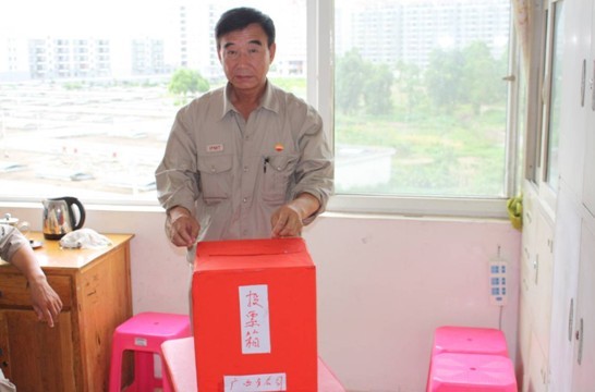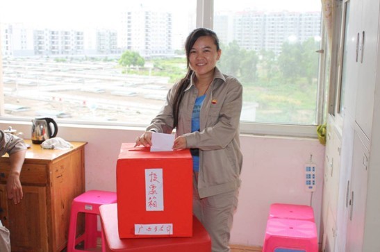 監(jiān)票人在清點(diǎn)參加會議的黨員人數(shù)