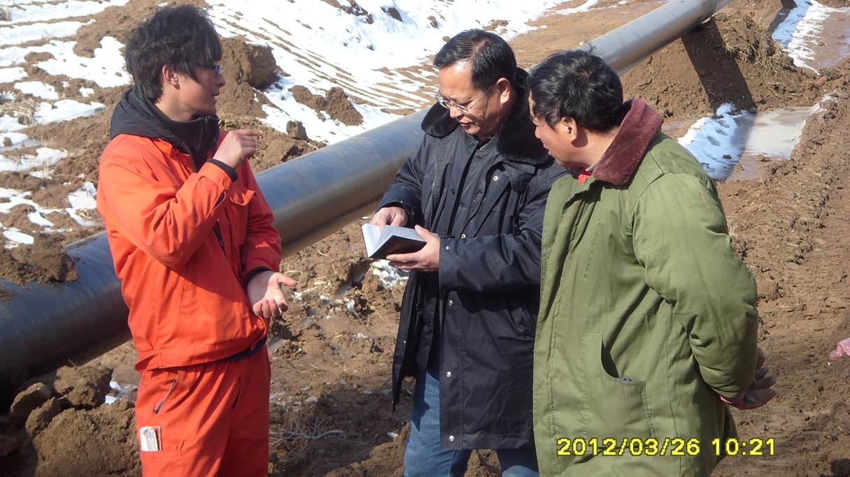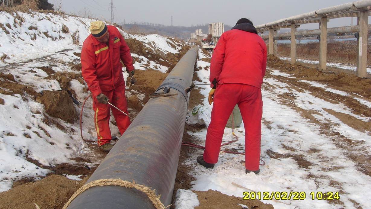 監(jiān)理人員檢查管線(xiàn)補(bǔ)口質(zhì)量